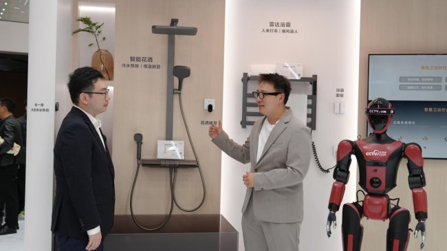 “很多人都有过这样的体验:洗澡前光着身子等半天,出来的却是冷水。”记者铸子话音刚落,机器人小央远程启动了“智雨精灵”智能花洒Pro的“冷水智排”功能。"铸子,请伸手。"几乎同时,花洒流出了恒温热水。记者伸手感受:“没有等待,水温刚刚好。”